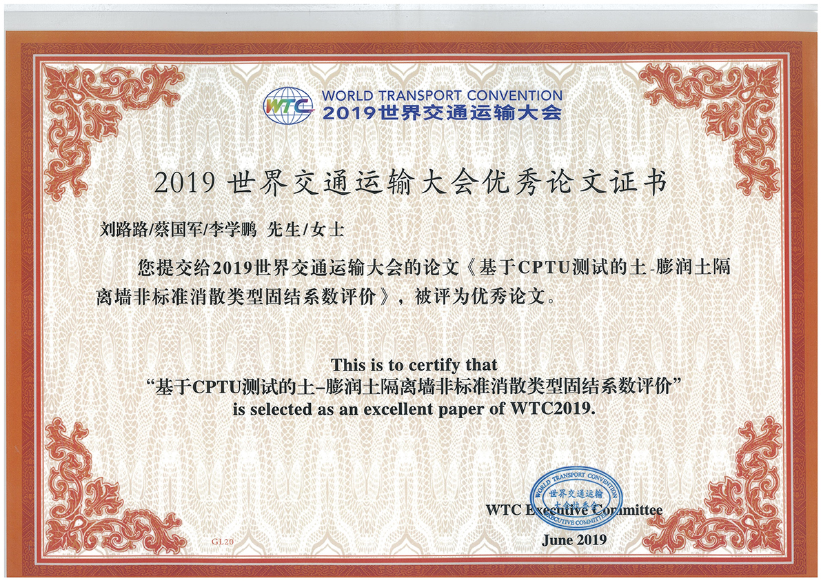 2019年世界交通运输大会优秀论文奖