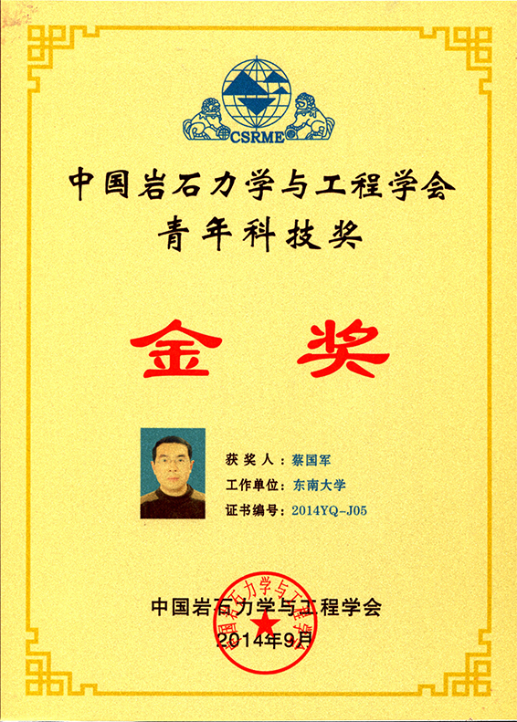 2014年第八届中国岩石力学与工程学会青年科技奖金奖