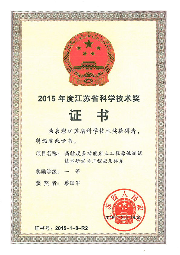 2015年江苏省科学技术奖一等奖