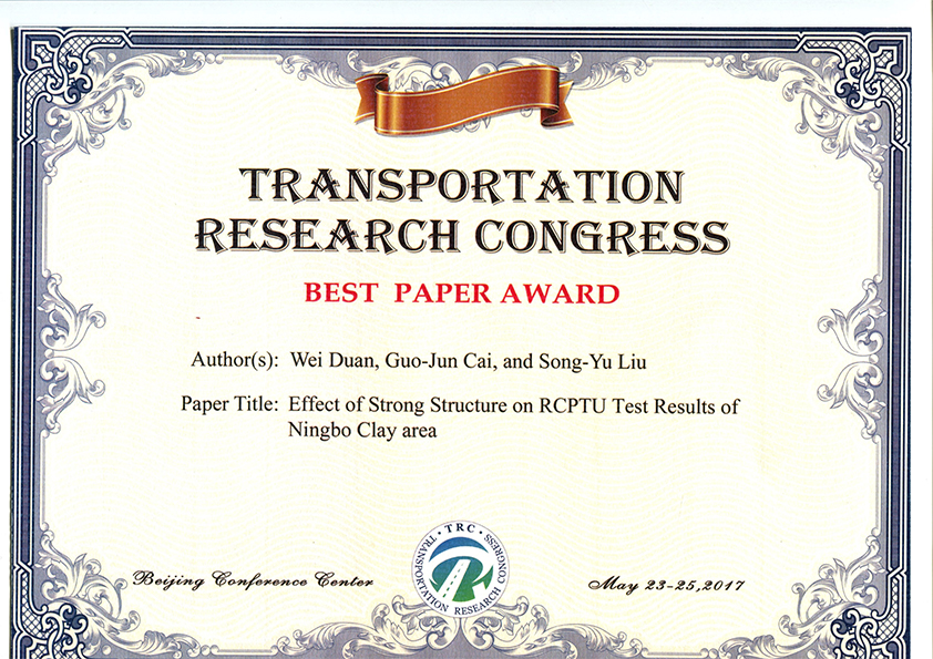 2017年第二届交通运输研究大会 (TRC)最佳论文获奖