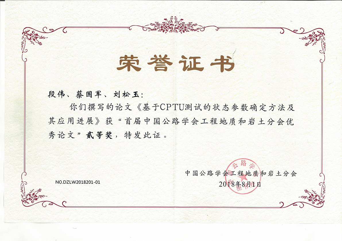2018年首届中国公路学会工程地质和岩土分会优秀论文奖