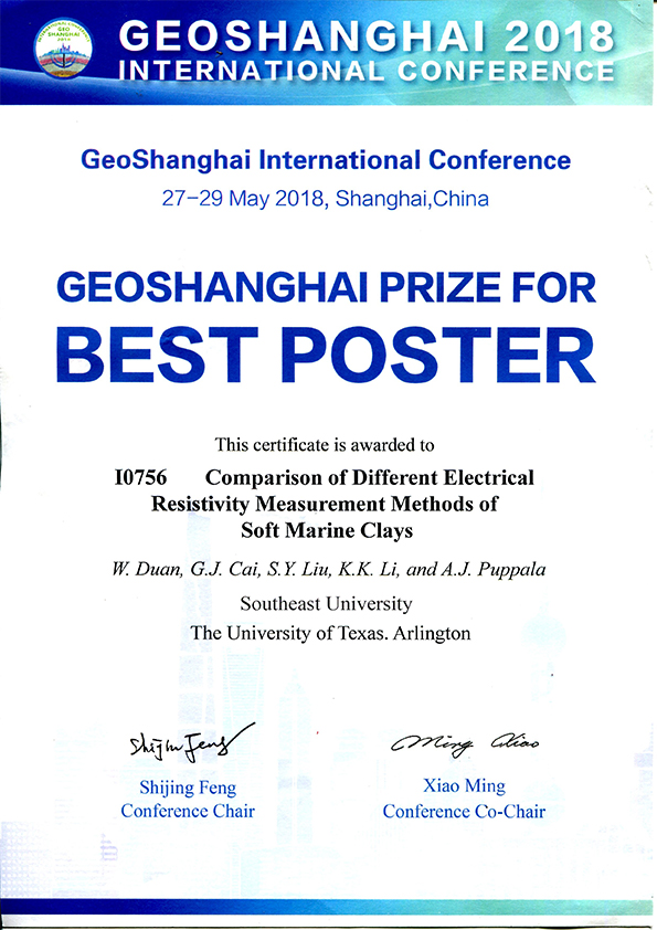 2018年GeoShanghai 2018 国际会议最佳海报奖
