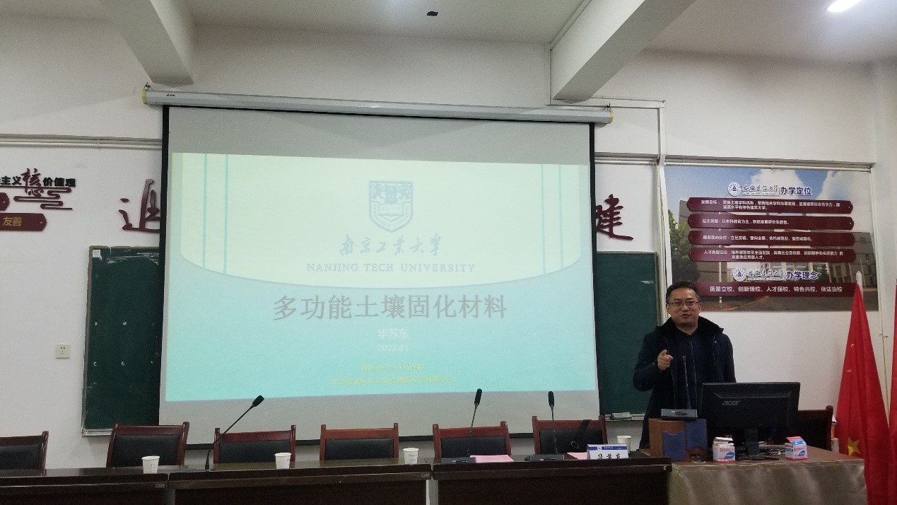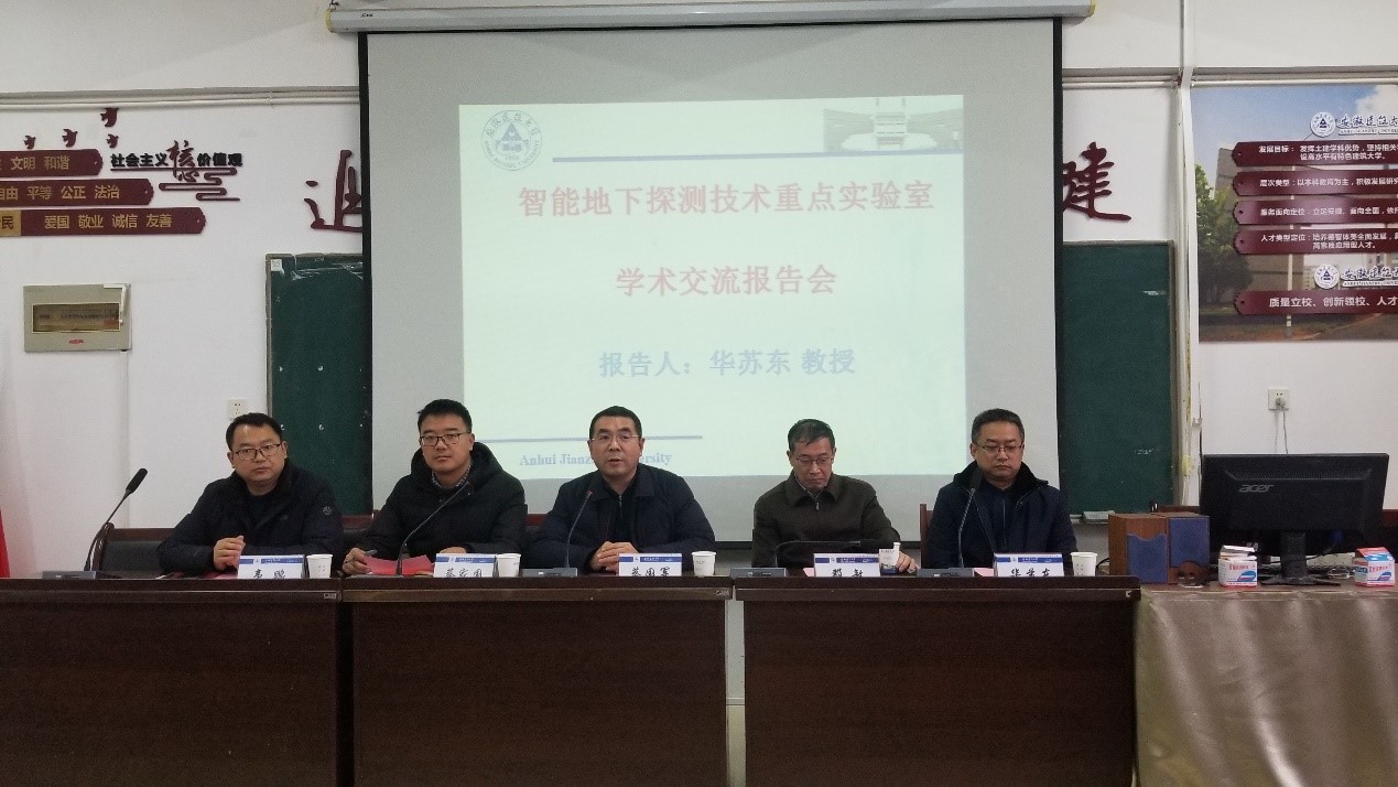 1月6日,南京工业大学材料科学与工程学院邓敏教授与交通学院院长周峰教授一行6人访问智能地下探测技术重点实验室,并开展学术交流。学术活动由安徽建筑大学副校长、重点实验室主任蔡国军教授主持。华苏东教授做了题为“多功能土壤固化材料”的学术报告,报告围绕土壤固化材料,结合固体废弃物资源化利用、磷石膏基胶凝材料固化和改良盐渍淤泥等关键技术,介绍了工业废渣协同制备节能墙材产业化开发以及工业副产品在土壤固化方面的应用前景。参会人员进行了深入交流,大家就产学研合作表达了良好意向。与会教师结合个人研究方向与南京工业大学一行进行了深入的交流。