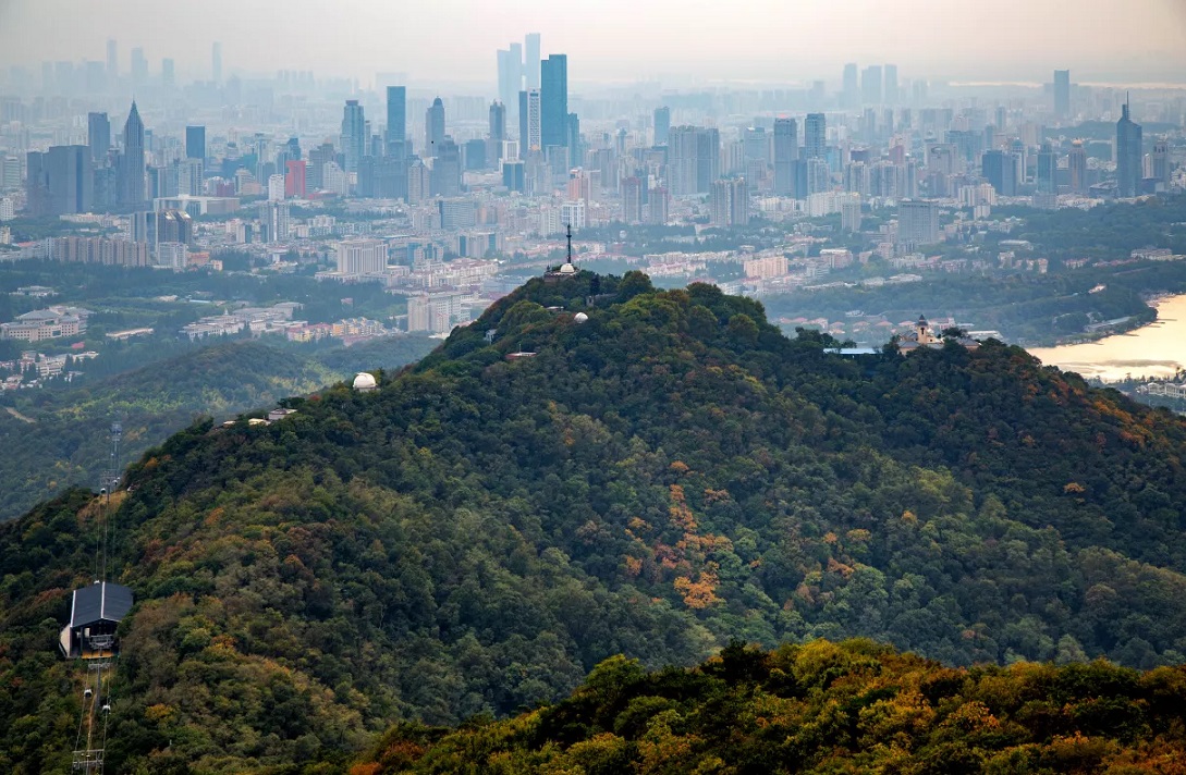 紫金山位于南京市玄武区境内,又称钟山、蒋山、神烈山,是江南四大名山之一,有“金陵毓秀”的美誉,是南京名胜古迹荟萃之地。紫金山主峰海拔448.9米,周围约30公里,三峰相连形如巨龙,山、水、城浑然一体,古有“钟山龙蟠,石城虎踞”之称。