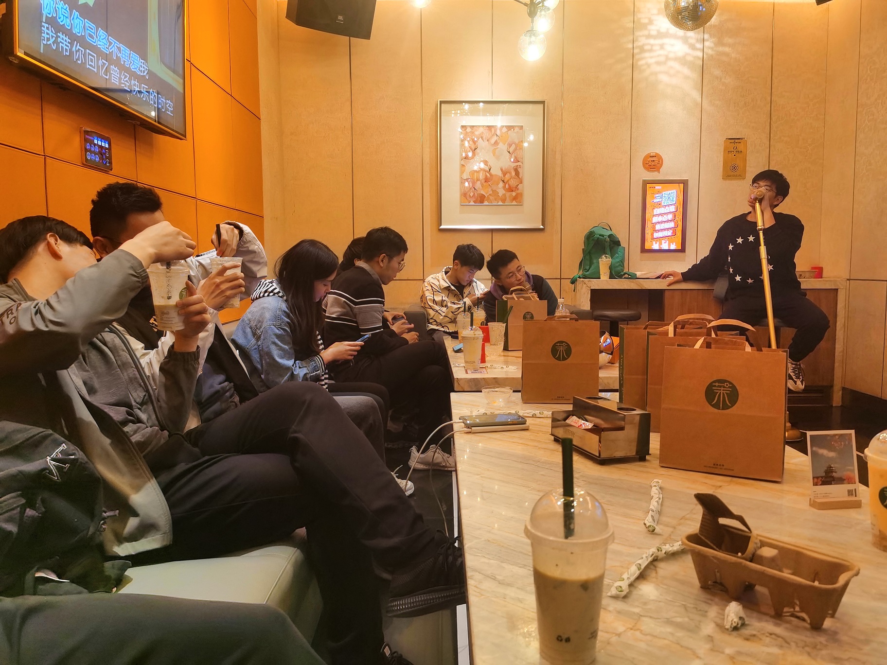 登山结束后,大家又相聚一起,开展了紧张而又刺激的桌游,并一起在KTV嗨唱,尽情释放着平日的科研压力。最后,大家相聚桃园餐厅,享受美食盛宴。