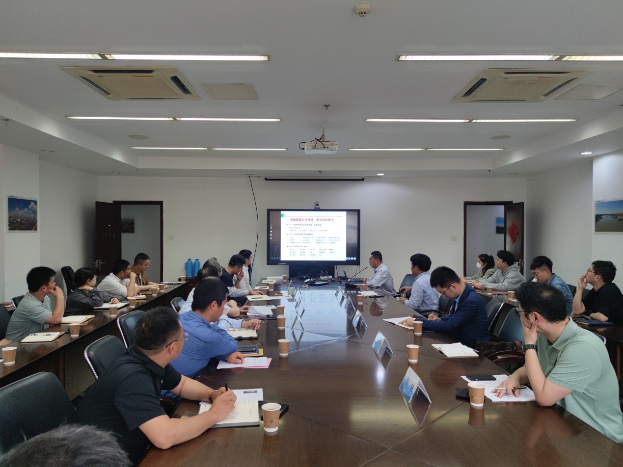 520日下午,安徽建筑大学党委常委、副校长蔡国军教授率安徽建筑大学土木工程学院、安徽省智能地下探测技术研究院、智能地下探测技术重点实验室、环境岩土重点实验室等部门相关人员赴安徽省交通规划设计研究总院进行学术交流。安徽省交通规划设计研究总院副总经理、总工程师陈修和与副总工程师、安徽省勘察大师张胜等热情接待了蔡国军一行。