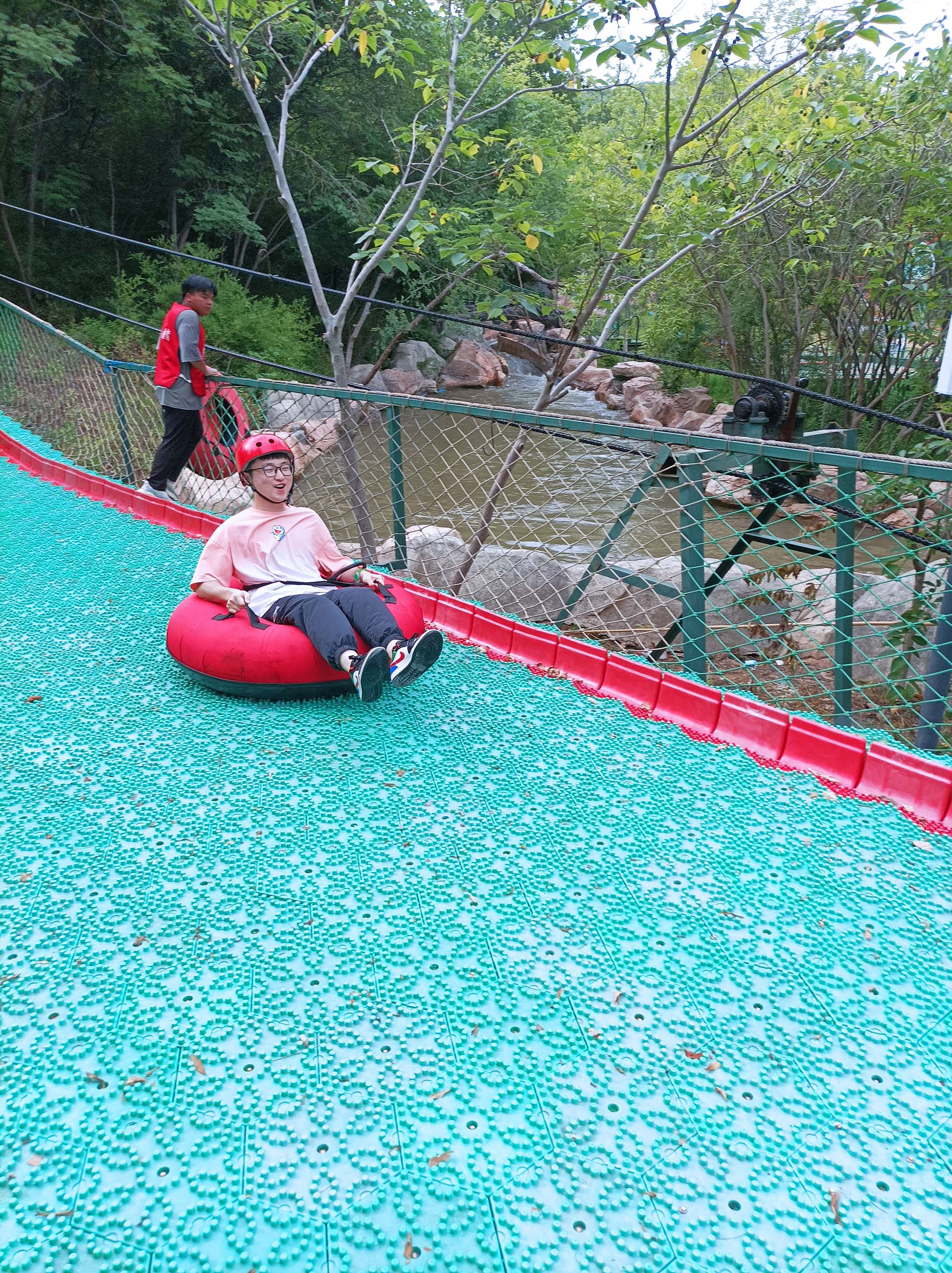 午后,大家相聚在龙出没穿越漂流乐园,只见整个穿越漂流藏在森林里面,有2.2km,犹如一条飞龙,穿越于森林飞驰而下,翻越崇山峻岭。大家纷纷穿上了安全防护,迫不及待开启惊险刺激的穿越漂流之旅。