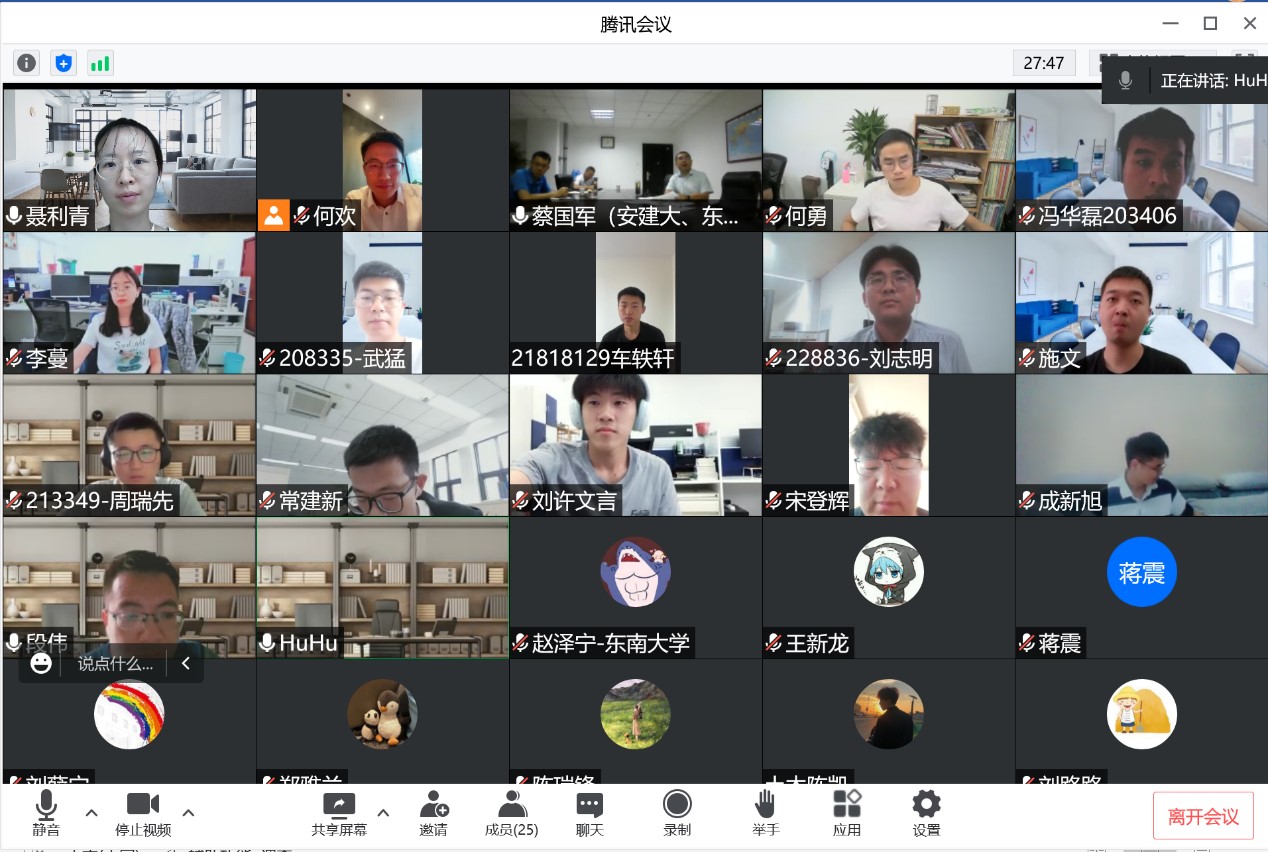 会上,蔡国军教授关心课题组各位成员的学习情况。每一位课题组成员进行了就近期学习,生活的情况进行了详细汇报。蔡国军教授结合大家的汇报做了详细点评与深刻的关怀。