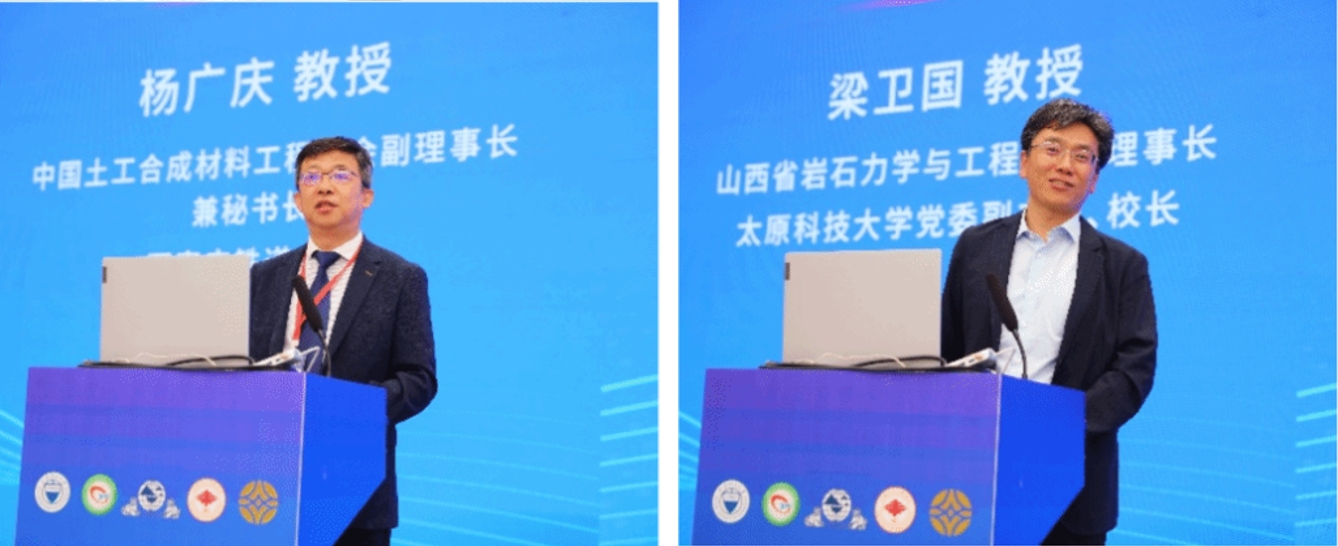 会议开幕式由太原理工大学研究生院院长董晓强教授主持。太原理工大学党委副书记、副校长肖连团教授,中国岩石力学与工程学会副理事长李文伟教授,中国土工合成材料工程协会副理事长兼秘书长杨广庆教授,山西省岩石力学与工程学会理事长、太原科技大学党委副书记、校长梁卫国教授分别进行致辞,对与会代表的到来表示诚挚欢迎,并对环境岩土工程与土工合成材料的前景寄予厚望,为学术论坛拉开了序幕。