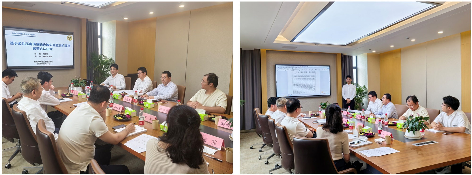 刘志明博士(导师:蔡国军教授)围绕其博士论文《基于柔性压电传感的边坡灾变监测机理及预警方法研究》,创新性地研发了长距离、大面积柔性压电薄膜(PVDF)和自传感压电土工电缆(SPGC),深入探究了SPGC在边坡灾变中的监测机理、试验结果、理论模型及工程应用研究。答辩委员会对刘志明博士的研究成果表示高度肯定,并针对研究细节提出了专业建议。经过讨论,答辩委员会一致通过刘志明博士的博士学位论文答辩,授予工学博士学位,并一致推荐其博士论文参加优秀博士学位论文评选。