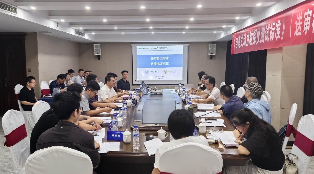 编制组成员何欢副教授汇报了《标准》的编制过程,系统介绍了标准的编制背景、基本信息、征求意见阶段的意见处理、专利及工程应用、需提请专家组审议的问题等。专家组对《标准》送审稿进行了逐条审查,并就关键技术问题进行了深入质询和讨论,在自落式触探的仪器设备、探头标定、现场测试及数据处理等方面均提出了建设性的意见和建议。专家组一致认为:《标准》编制符合工程建设标准编写规定,送审资料齐全,符合审查要求。《标准》的内容科学合理、可操作性强,系统总结了国内外研究成果和工程实践经验,提出了自落式触探测试设备和探头以及测试数据分析方法,填补了该类设备测试方法的国内空白,整体达到国际水平,《标准》的编制对提高水域浅层软弱土勘察技术水平具有重要作用。