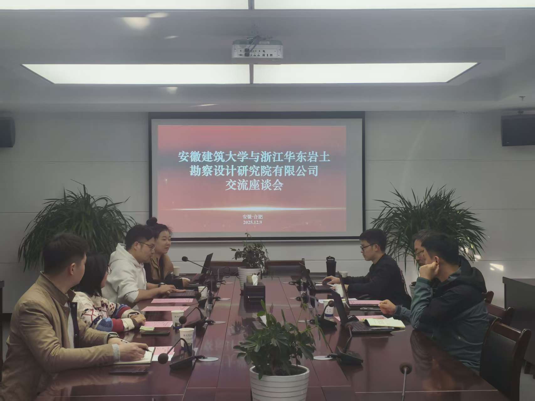 为深化校企合作,促进学校在海洋岩土原位测试领域的产学研深度融合,2025年12月9日下午,安徽建筑大学与浙江华东岩土勘察设计研究院有限公司(以下简称“华东院”)交流座谈会在安徽建筑大学南校区实验综合楼第三会议室成功举行,双方围绕科研项目攻关和科研成果转化等议题进行了深入研讨。