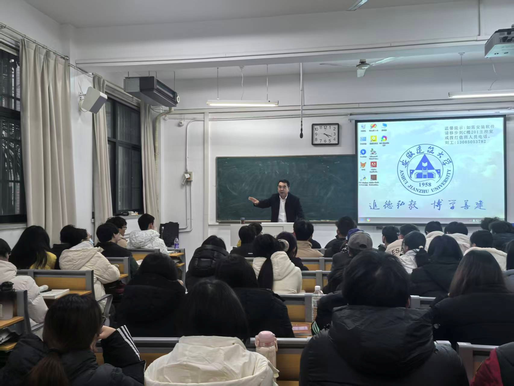 课间,蔡国军指出,安徽建筑大学目前正处于学科快速发展的黄金时期,其社会影响力也在持续扩大。学校紧密围绕国家和区域发展战略,尤其是以经济社会发展对土建类专业的需求为导向,不断优化学科专业的布局与调整,持续提升服务安徽高质量发展的能力,在省属高校中的特色地位和影响力愈发凸显。学校积极抢抓机遇,成立教育部高等研究院融合发展创新研究中心,致力于打造高层次创新平台,以此汇聚资源,培育国家级人才与团队。他期望全体同学能够抓住学校快速发展的历史机遇,将个人成长融入学科进步和学校腾飞的大格局中,明确人生方向,树立远大目标,在与学校共同前行的过程中实现自我价值。